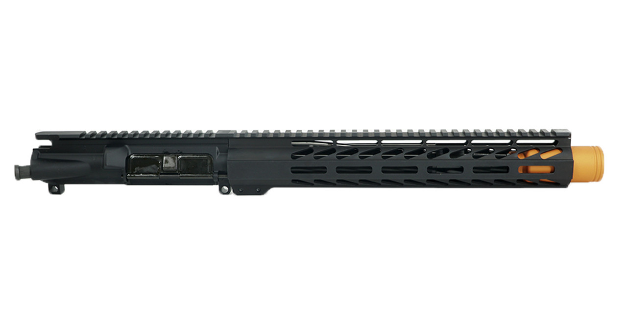 ALWAYS ARMED 10.5″ 5.56 NATO UPPER RECEIVER WITH 12″ MLOK RAIL & TEQUILA SUNRISE FLASH CAN – BLACK