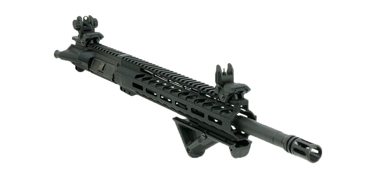 ALWAYS ARMED 16″ 5.56 NATO UPPER RECEIVER WITH 12″ M-LOK RAIL, POP UP SIGHTS AND ANGLED FOREGRIP