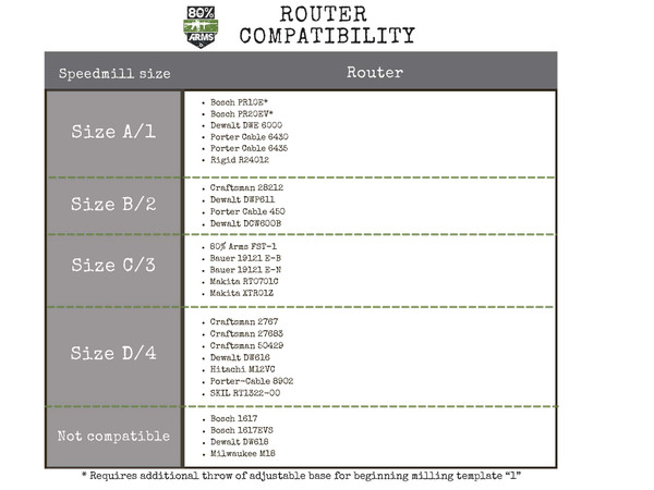 Please be advised if your router needs the D/4 Speedmill, you will also need to purchase our Large Router Base.