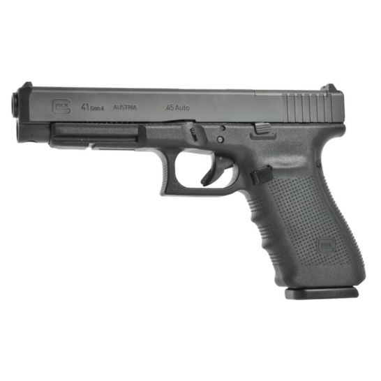 The GLOCK 41 Gen4 is a 45 ACP pistol designed to maximize sight radius while achieving perfect weight distribution and balance. The longer barrel and slide help to reduce muzzle flip and felt recoil whereas the MOS Configuration makes it easy to mount a miniature reflex sight on the pistol’s slide without the need for a new slide or separate mounting system. The Modular Back Strap system makes it possible to instantly customize its grip to accommodate any hand size. The reversible magazine catch makes it ideal for left and right-handed shooters.