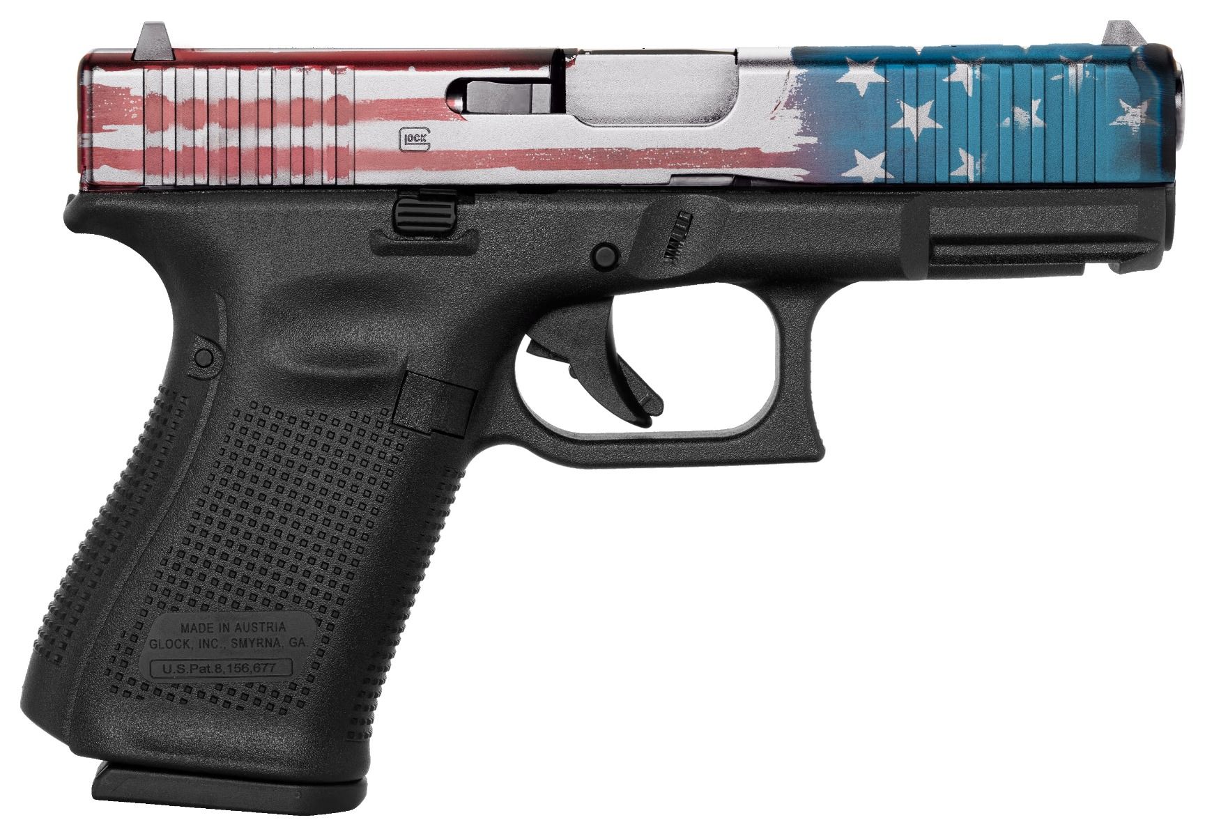 Glock G19 Gen5 4″ 9mm 15rd Pistol, American Flag Slide – PA195S203RWB