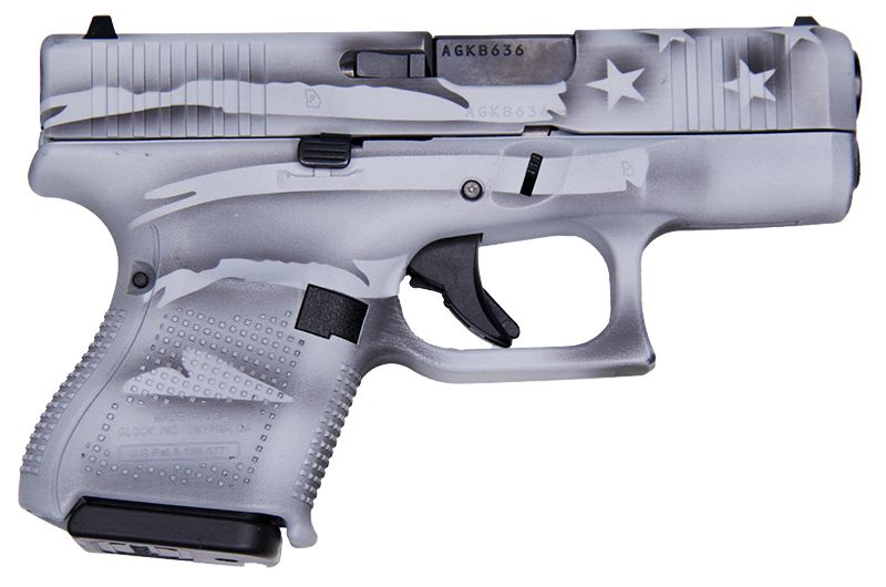 Glock G26 Gen5 9mm 3.5″ 10rd Pistol, Battleship Grey Distressed Flag – UA265S204-BWFLAG