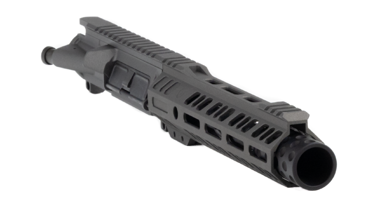 Grid Defense 10.5″ 5.56 Dimpled Flash Can Upper in Tungsten Gray