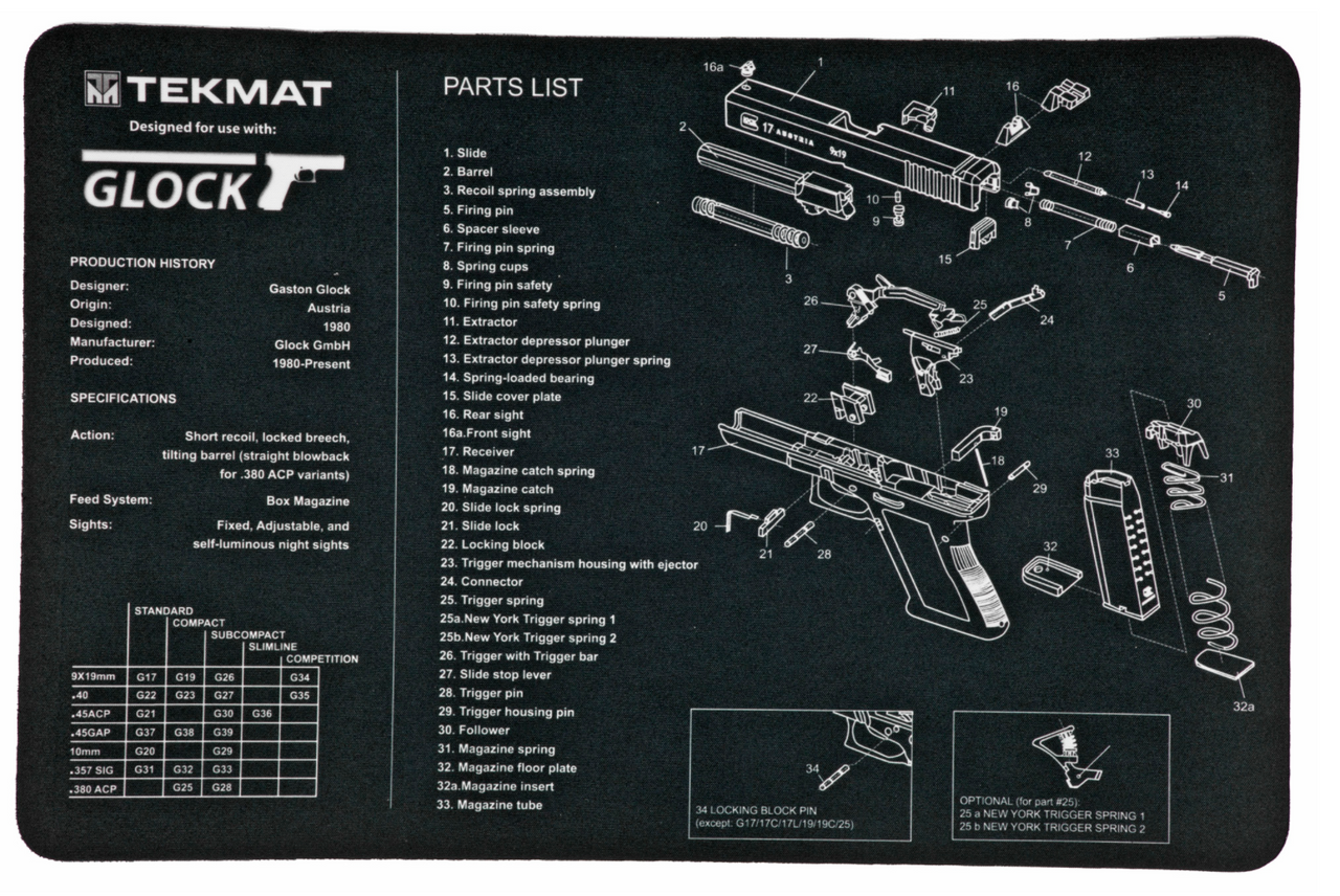 TEKMAT, PISTOL MAT FOR GLOCK, 11″X17″, BLACK, INCLUDES SMALL MICROFIBER TEKTOWEL, PAKED IN TUBE