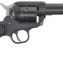 Ruger’s Wrangler features a transfer bar mechanism and loading gate interlock to provide an unparalleled measure of security against accidental discharge. It utilizes a Cerakote finish for rugged reliability in all environments, cold hammer-forged barrel for ultra-precise rifling, blade front and integral notch rear sights, and checkered synthetic grips on a Single-Six pattern grip frame.